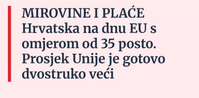 Koliko se ova vlast isprdava sa svojim građanima danas potvrđuju podatci s Eurostata. Medijalna mirovina u bruto prosjeku medijalne plaće u svih europskim zemaljama iznosi 60 %.