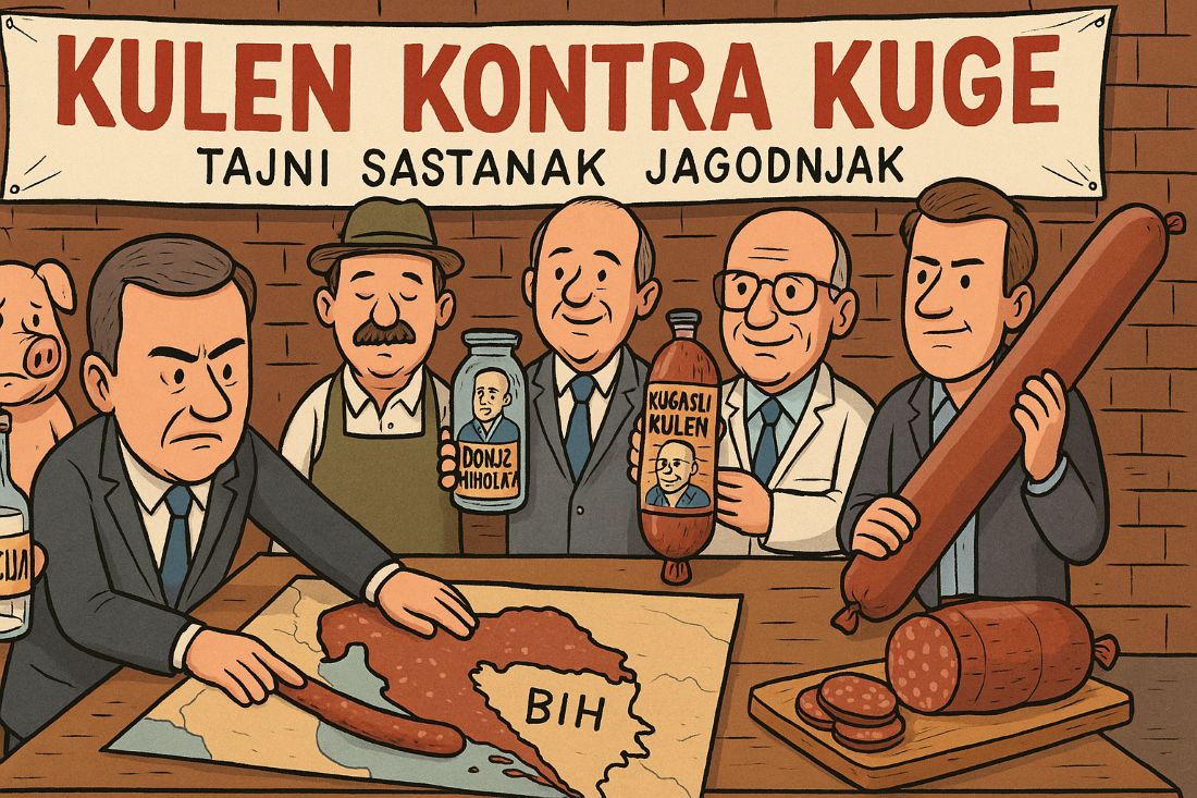 Penava je predložio da se kulen koristi kao barikada na granici. “Ako ne možemo zaustaviti virus, možemo ga barem zamastiti!” uzviknuo je, dok je mazao kobasicu po karti BiH.